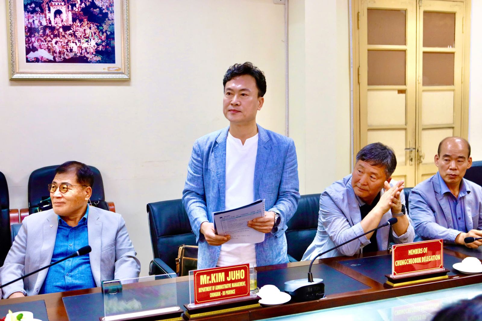 Phát biểu tại buổi làm việc, ông Kim Juho, Sở Hành chính - Quản trị, Chính quyền tỉnh Chungcheongbuk bày tỏ ấn tượng với sự phát triển của tỉnh Phú Thọ, đặc biệt là các mô hình nông nghiệp, chương trình xây dựng nông thôn mới và vai trò của cộng đồng thôn – khu dân cư trong phát triển địa phương. Đoàn mong muốn hai bên tăng cường trao đổi thông tin, thiết lập kênh hợp tác thường xuyên nhằm chia sẻ kinh nghiệm quản lý cộng đồng, phát triển nông nghiệp thông minh, du lịch và văn hóa.
