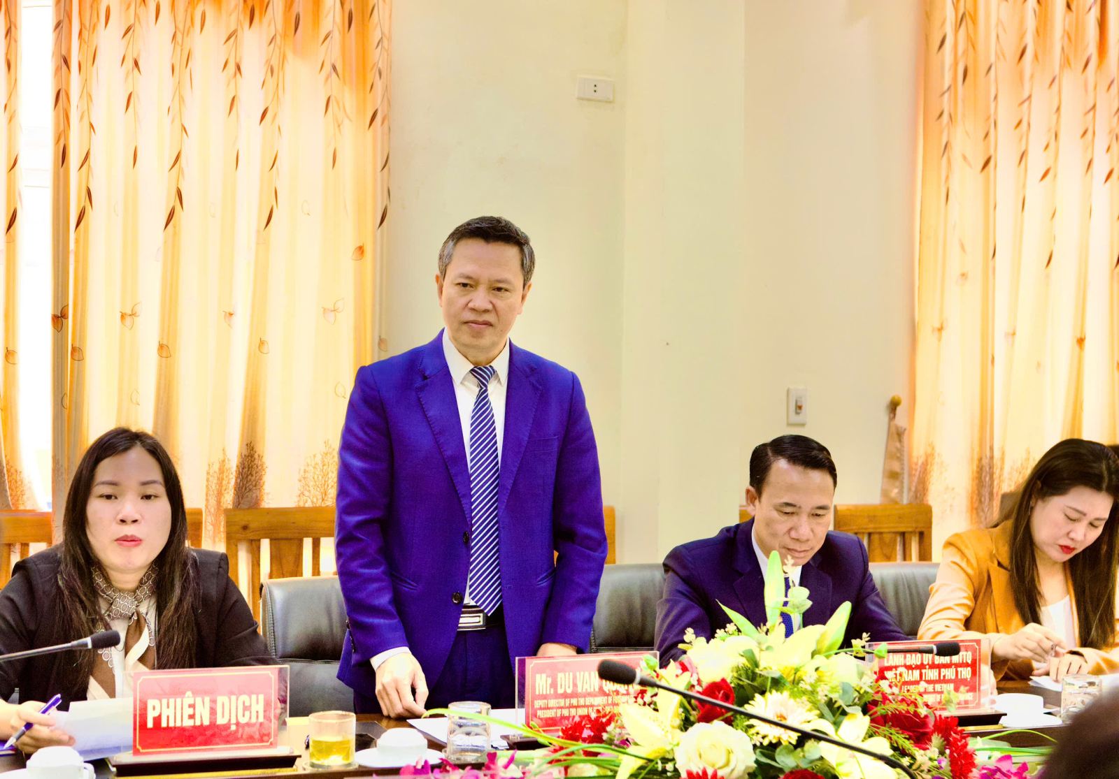 Phát biểu tại buổi làm việc, ông Dư Văn Quảng, Phó Giám đốc Sở Ngoại vụ, Chủ tịch Liên hiệp các tổ chức hữu nghị tỉnh đã thông tin tổng quan về điều kiện tự nhiên, kinh tế – xã hội, tiềm năng hợp tác và một số kết quả nổi bật của tỉnh trong năm 2025, đặc biệt sau khi tỉnh được thành lập trên cơ sở sáp nhập ba tỉnh Phú Thọ – Vĩnh Phúc – Hòa Bình.